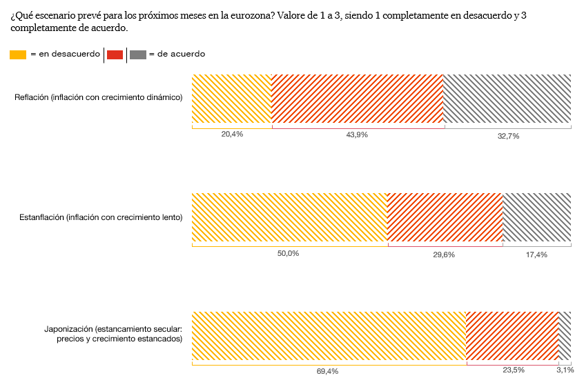 Simultáneamente, ha cedido algo la preocupación por el déficit y la deuda pública, otro de los factores de riesgo tradicionales de la encuesta, que ahora lo valoran como importante el 41,4%.