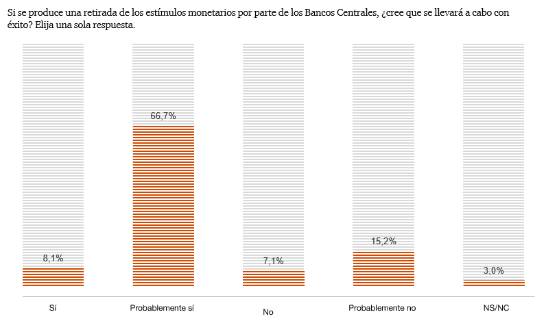Significativamente, la encuesta se hizo antes de que se conociera la aparición de ómicron, la nueva variante del virus, y se ignoraban por tanto las restricciones a la actividad impuestas en muchos países del mundo a raíz del hallazgo. De haberse realizado ahora, la percepción de riesgo para la coyuntura actual hubiera sido seguramente mucho mayor.
